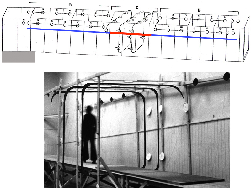 Die Zugangsröhre zu einem Studio des Österreichischen Rundfunks ORF sollte zu einer Ton-Architektur umgestaltet werden. Betreten und Verlassen des Gebäudes durch gerichtete Ton-Linien-Räume. Der mittlere Teil ist ein Spiral-Raum, der die gerichteten Ton-Räume (Eingang / Ausgang) trennt und verbindet.