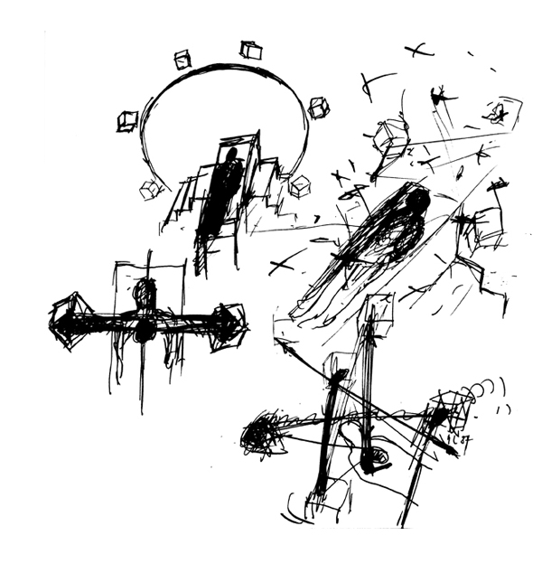 Aus der Mitte sich öffnender Raum. (Der Lautsprecher unter dem liegenden Körper ist aktiviert).