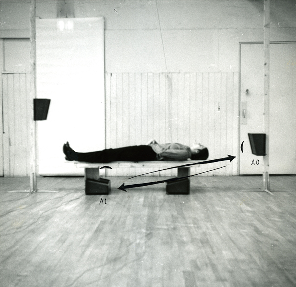 Notation einer streckenden Ton-Bewegung zwischen 2 Lautsprechern